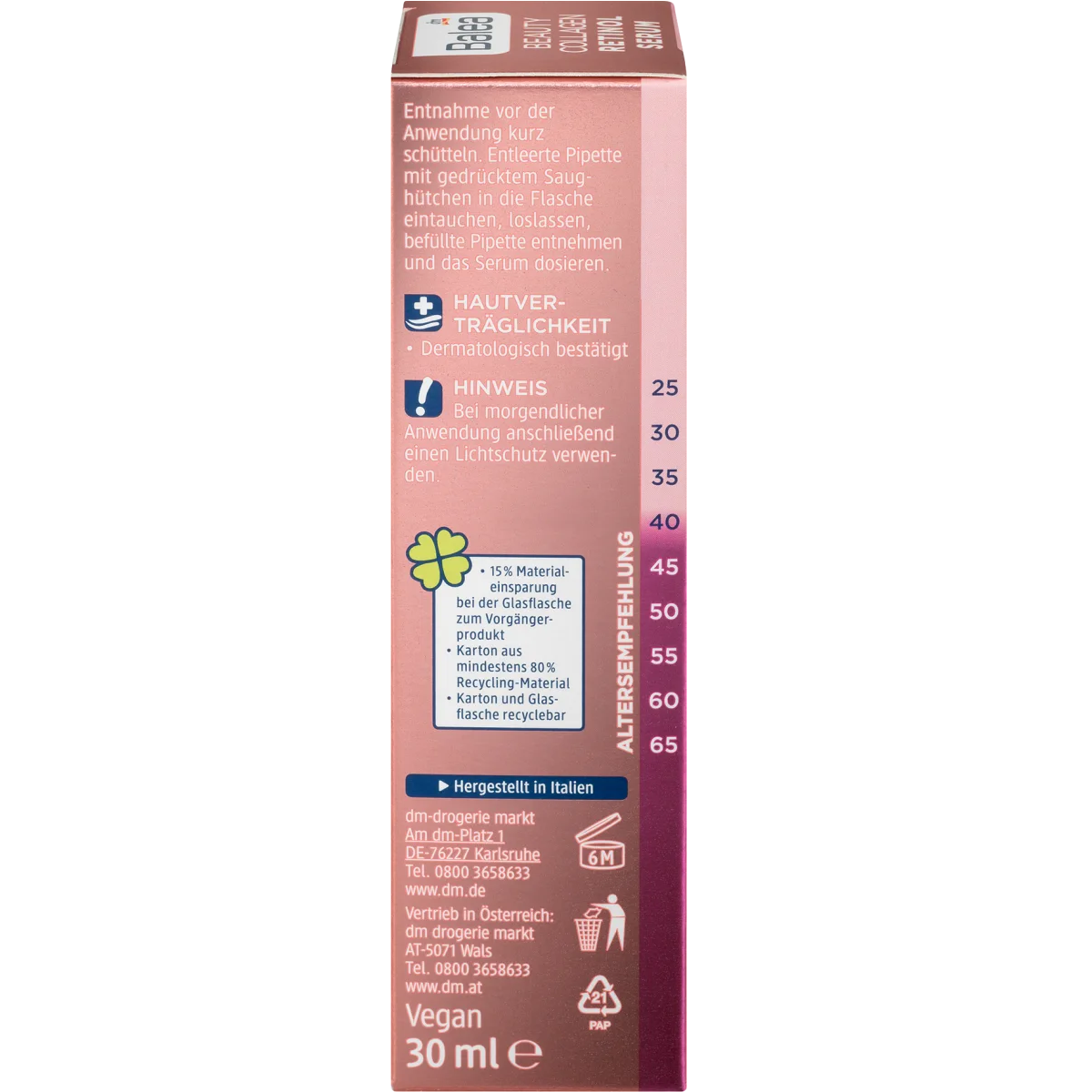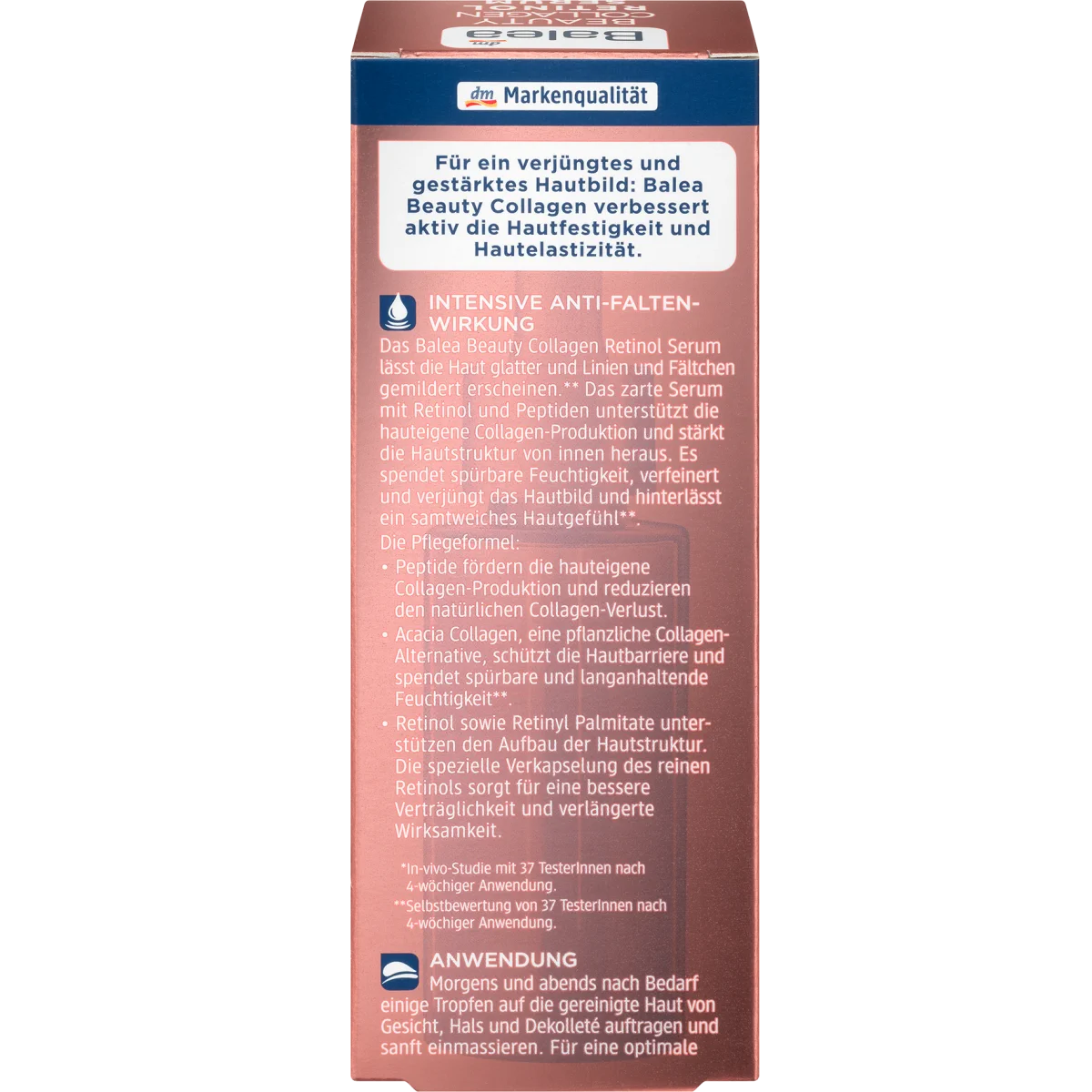 Pour une peau rajeunie et fortifiée : le sérum Beauty Collagen Retinol de Balea soutient de manière optimale la production naturelle de collagène. De plus, sa formulation au rétinol permet d'atténuer visiblement les rides. Les contours du visage sont raffermis et définis de manière fiable. De plus, le sérum améliore la fermeté et l'élasticité de la peau. Pour un effet lifting intense.
